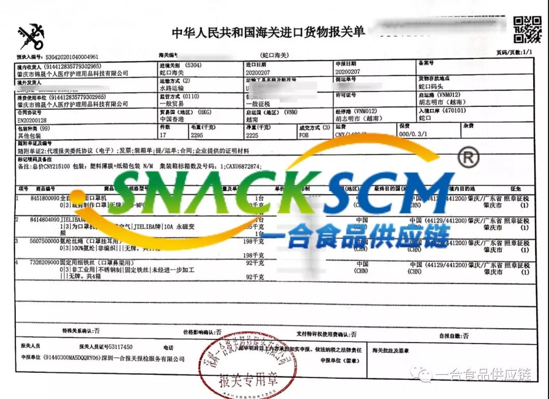 日前,廣東省肇慶市錦晟個人醫療護理用品有限公司慕名接洽一合公司,希望一合公司為其進口的”平面自動口罩機”生產設備提供一站式進口供應鏈服務。雖然正值春節假期疊加疫情嚴峻時期,操作、商務資源非常匱乏,但疫情就是戰情,一合公司立刻組成內部工作小組,無條件承接了該項任務。